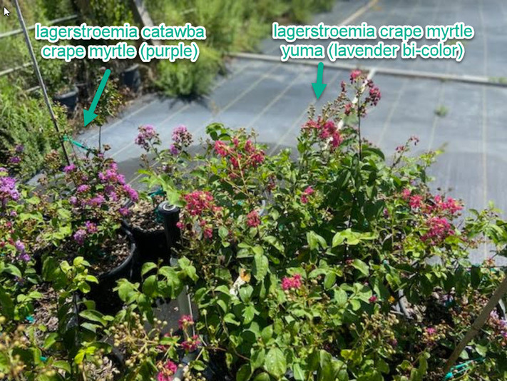 The Lagerstroemia Yuma Crape Myrtle is a classic with beautifully varied flower colors form light pink to bright lavender. Showy extra-large flower clusters almost cover the rich-green foliage from early summer through early fall. In spring, emerging leaves of the Catawba crape myrtle are an attention-getting bronze color. Fall color of orange-red is just as spectacular.  Excellent cold hardiness for central and southern Texas. Our purple crape myrtles grow very quickly and in a moderate size making it perfect for a hedge for backyard privacy in the summer and fall.